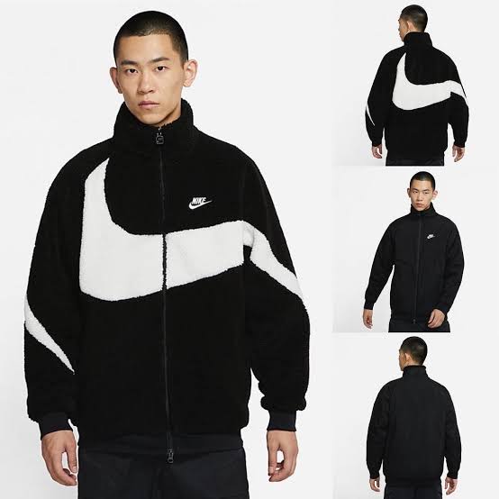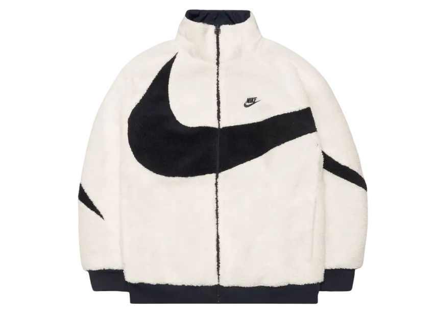 Stand out in streetwear style with the Nike Big Swoosh Reversible Boa Jacket in Black and Sail. This versatile piece features a reversible design, offering two distinct looks in one – one side flaunting a bold Swoosh design, the other a clean minimalist style. The plush boa fleece keeps you warm during cooler days, while its relaxed fit and sporty edge make it perfect for everyday wear. A fusion of fashion and function for the modern man.